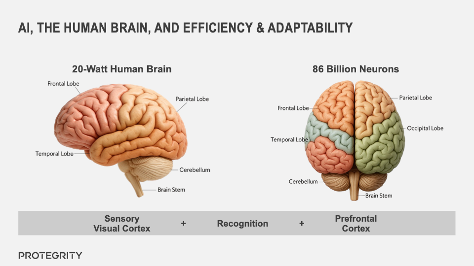 On the other end of the spectrum, there’s the human brain itself. It turns out that neuroscientists have done a lot in trying to understand how the brain works. The human brain learns by shifting the strength of connections between neurons. It also turns out that scientists have measured the brain’s consumption of energy in terms of wattage, which is about 20 watts of power, yet it packs roughly 80 to 100 billion neurons and about 100-500 trillion synapses. That’s absurdly efficient, and a worthy benchmark for both intelligence and energy use, offering a different view of data centers themselves.