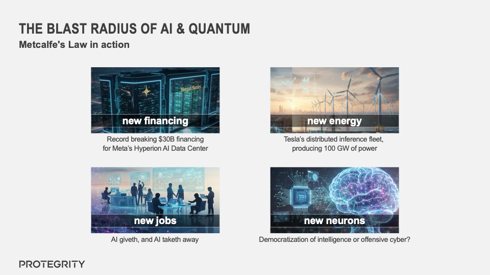 What looks like mania is actually the collision of two old forces: greed (chasing outsized returns) and exhuberance (belief tha the future can be engineered faster). So, will these new “neurons” of data centers democratize intelligence? Or empower state-sponsored cyber-offensive and accelerate a dystopia? Probably both. What’s certain is that Metcalf’s Law is in full swing, and these new neurons will unfold, like a flower, into our work, companies, and daily lives.