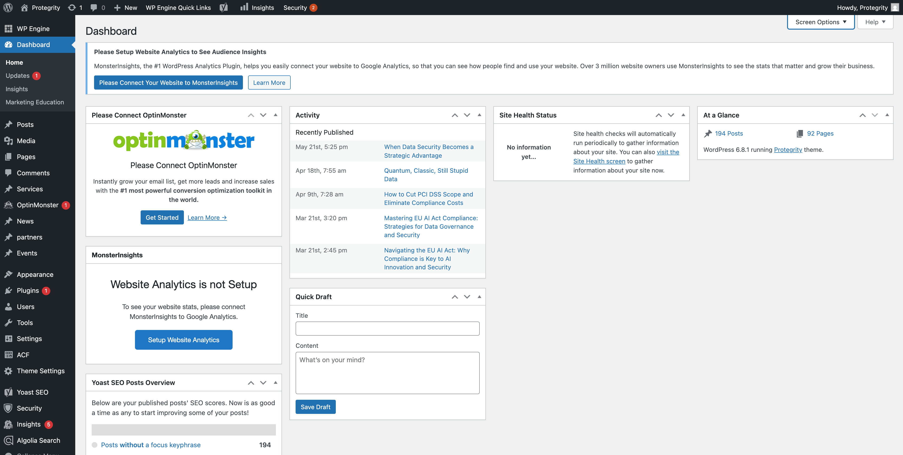 Your website uses WordPress's Full Site Editing (FSE) with the Gutenberg block editor, giving you powerful tools to create and customize pages. You also have access to custom "Protegrity Blocks" designed specifically for your website's needs.