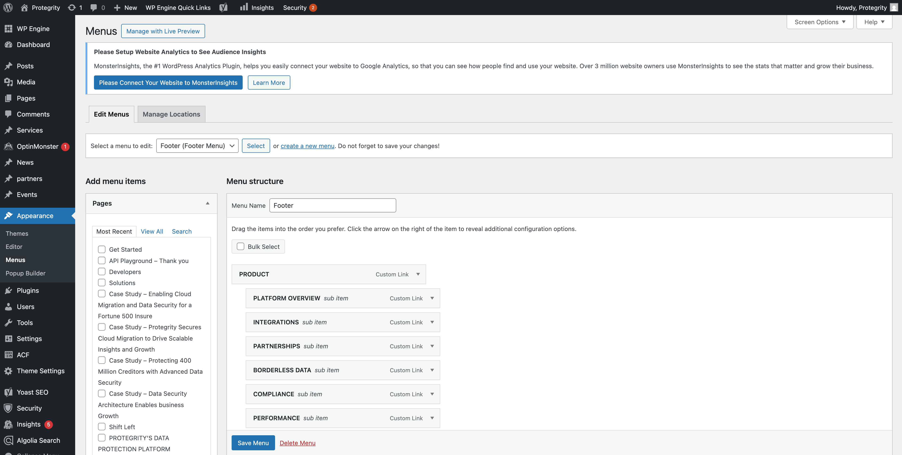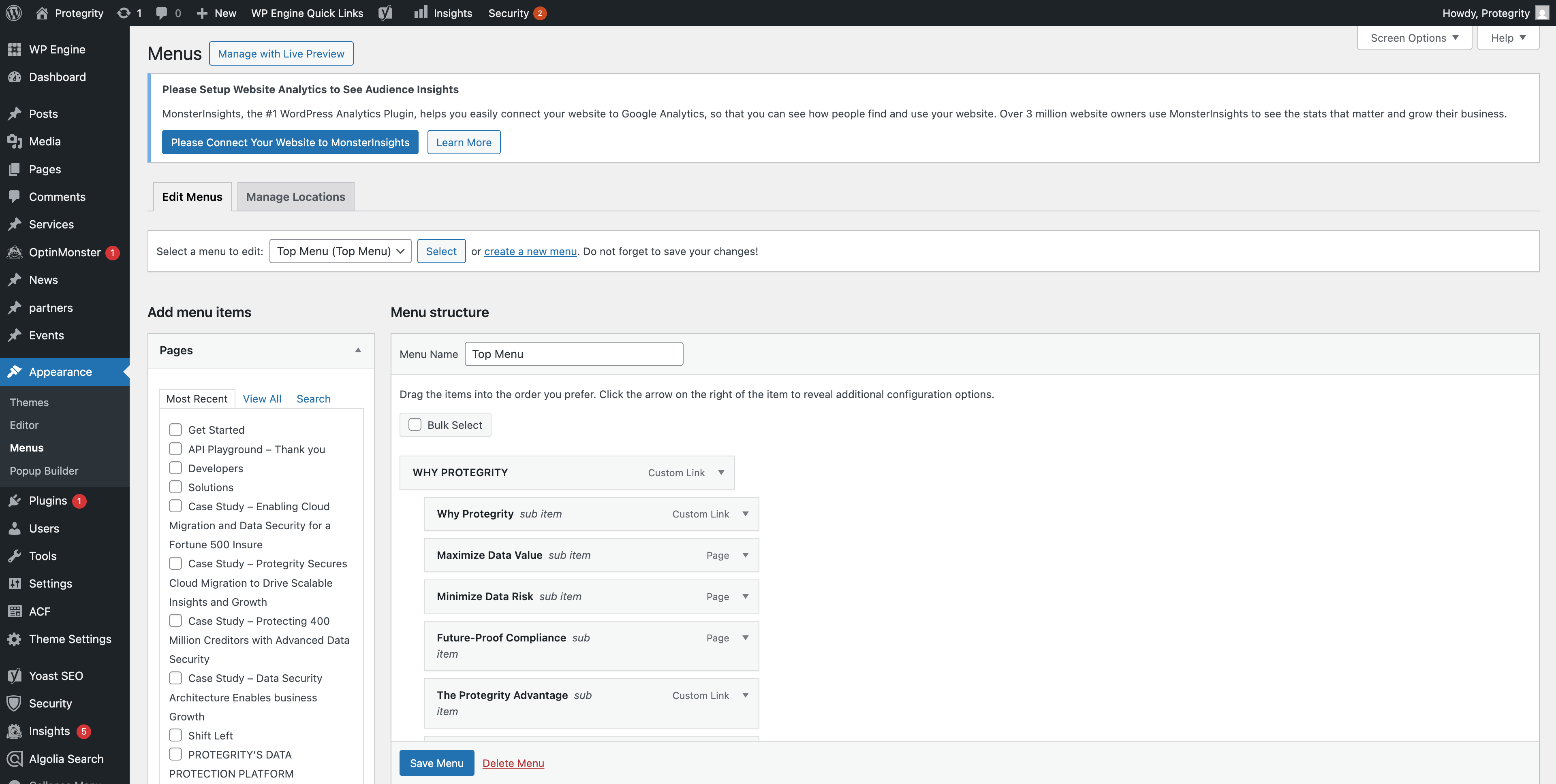 From your dashboard, navigate to Appearance → Menus in the left sidebar.